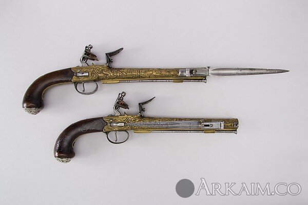Пара пистолей комбинированных со штыками, 1790 г. Британия. Метрополитен_музей, Нью-Йорк