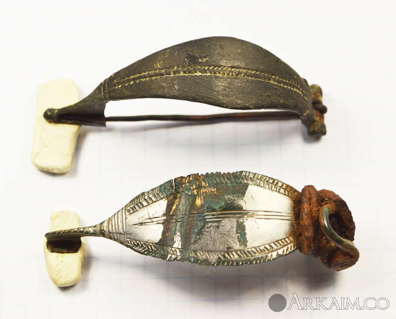 Две фибулы, бронза с посеребрением, обе фибулы по 6 см. Житомирская обл.