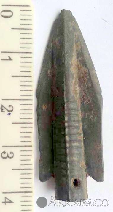 Двухлопастной килевидный наконечник с приостренными лопастями и тамгой, 8-7 вв. до н.э. Полтавская обл.