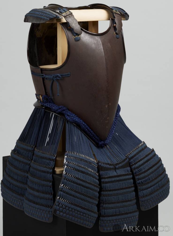 Кираса намбан-до с характерным для европейский кирас напуском внизу. Японцы приделали к ней кусадзури и покрыли коричневым лаком.