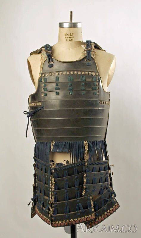 Типичный окегава-до с пластинами, соединенными ковкой и странным дополнением в виде верхних пластин на шнурах. Метрополитен-музей, Нью-Йорк.