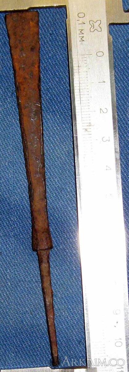 Срезень в виде узкой вытянутой лопаточки, тип 67 по Медведеву, 13-14 вв. Харьковская обл. Краснокутский р-н