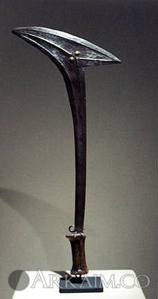 Топор (или меч?) одна сторона которого абсолютно гладкая. Длина примерно 60-70 см, заточка стамесочная, сделанная специально для рубящих ударов. Центральная Африка. Встречается также в Камеруне и Конго. Возникновение связывают с народностью гбая.