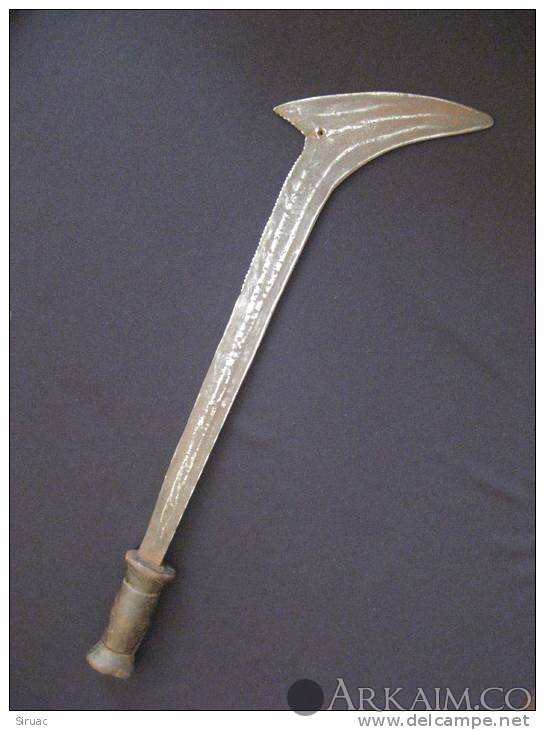 Топор (или меч?) одна сторона которого абсолютно гладкая. Длина примерно 60-70 см, заточка стамесочная, сделанная специально для рубящих ударов. Центральная Африка. Встречается также в Камеруне и Конго. Возникновение связывают с народностью гбая.