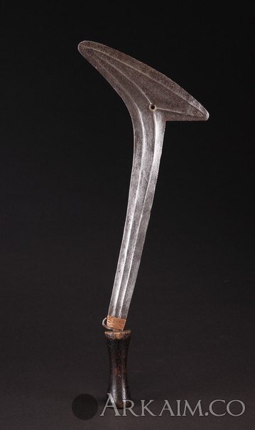Топор (или меч?) одна сторона которого абсолютно гладкая. Длина примерно 60-70 см, заточка стамесочная, сделанная специально для рубящих ударов. Центральная Африка. Встречается также в Камеруне и Конго. Возникновение связывают с народностью гбая (фото 1)