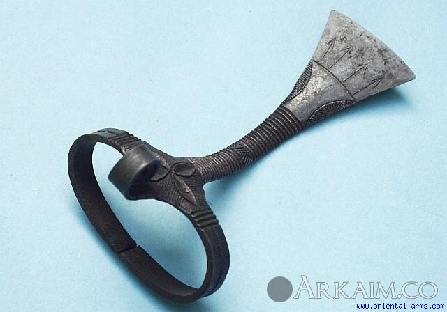 Нож одевался на ногу. Относится к племени туркана.