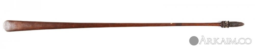 Тэ-э-ха. Через дефис написал как правильно произносят маори название своей дубинки. Обычно пишут одним словом тээха, но при произношении по русски надо отделять звуки. Размер тээхи от 1,5 до 1,8 м. Это оружие ближнего боя. Рабочих оба конца. Предназначена для нанесения колющих и дробящих ударов. Наконечник делается из дерева, базальта и нефрита. Он символизирует высунутый язык.