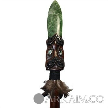 Тэ-э-ха. Через дефис написал как правильно произносят маори название своей дубинки. Обычно пишут одним словом тээха, но при произношении по русски надо отделять звуки. Размер тээхи от 1,5 до 1,8 м. Это оружие ближнего боя. Рабочих оба конца. Предназначена для нанесения колющих и дробящих ударов. Наконечник делается из дерева, базальта и нефрита. Он символизирует высунутый язык.