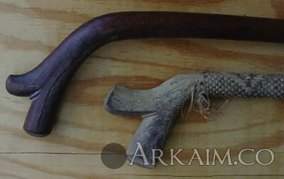 Дубинки с острова Фиджи киакэво. Эта дубинка использовалась в основном в танцах. На голове дубинки выступ, характерный для боевых дубинок совсем маленький и округлённый.
