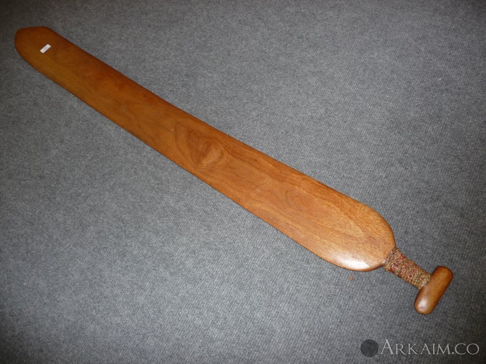 Деревянный австралийский меч. Его длина 172 см. Наверное подобные мечи должны были оказывать на врага психологическое воздействие. Рост аборигенов Центральной Австралии не превышал 160 см. Для Австралии того времени появление таких мечей было революционным в военном искусстве событием.