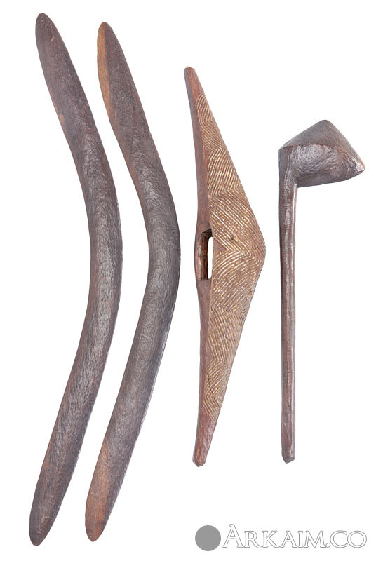 Дубинка, щит и бумеранги аборигенов Австралии