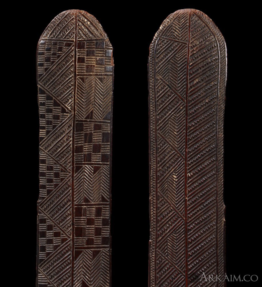 Этот тип дубинок с Тонга относится к тому же типу что и паки паки. Только здесь другая форма лопасти. Хотел бы обратить внимание на одну деталь. Орнамент вырезанный с двух сторон лопасти дубинки разный. Это характерно для Тонга