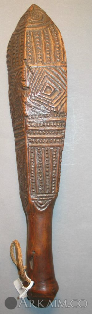 Метательная дубинка маори patuki. В длину она была 25-35 см. Дубинки украшенные резьбой и большей длины (до 50 см) выполняли ритуальную функцию. Делали их из дерева и китового уса.