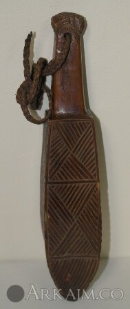 Метательная дубинка маори patuki. В длину она была 25-35 см. Дубинки украшенные резьбой и большей длины (до 50 см) выполняли ритуальную функцию. Делали их из дерева и китового уса.