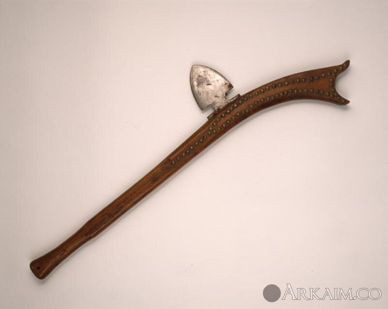 Когда в Северной Америке появились европейцы они привезли с собой ружья. Кремневое ружьё было длинным и имело большой приклад. Иногда ружьём пользовались при рукопашной. Брали его за ствол и били прикладом. Именно на приклад индейцы обратили своё внимание. Сначала индейцы покупали их и использовали как дубинки, потом стали в приклад вставлять ножи. Так появилась эта индейская боевая дубинка. Со временем индейцы стали делать дубинки сами, но форма приклада сохранилась.