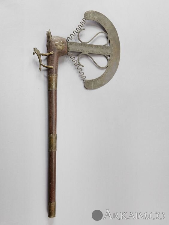 Топоры у которых идёт расширение от рта льва принадлежали царским посланникам. Этот сюжет символизирует мудрую царскую речь.