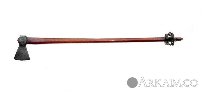 Топор с Вануату. Длина рукояти от 80 до 90 см. Для танцев делали аналогичной длины и формы деревянные топоры. С приходом европейцев на Вануату, там практически сразу прижился европейский топор. Только форма рукояти осталась туземной. Топор на фото 19-начало 20 века