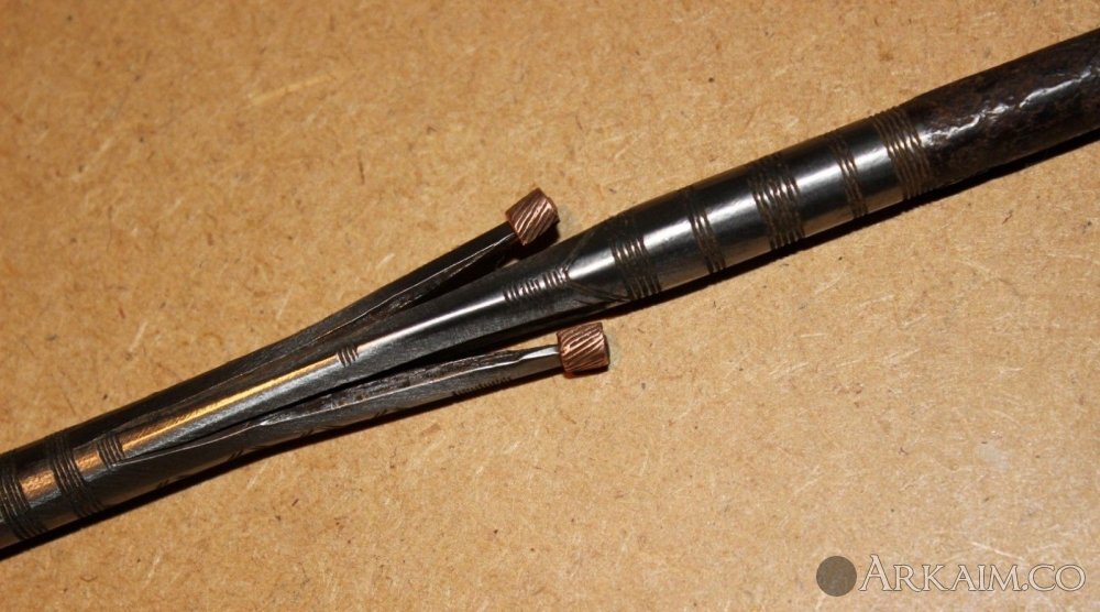 Стальное копьё из Мали, Африка. Длина около одного метра. Наконечник длинный и узкий, эта форма предназначена для того, что бы легче было проткнуть кольчугу или доспех. Противоположный конец сделан в виде топора, для нанесения рубящих ударов (фото 2)