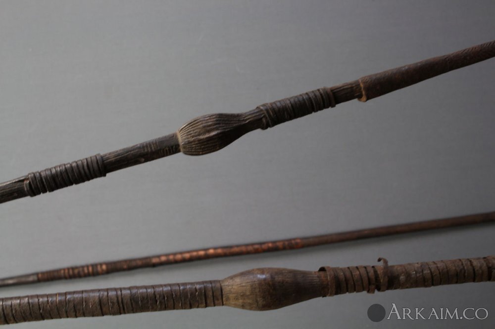 Копья из Конго и Заира. Ими пользовались вместо мачете или топора. Копьё оснащённое такими наконечником могло использоваться не только как оружие, но и как инструмент.
