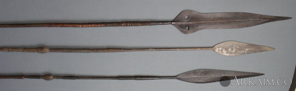 Копья из Конго и Заира. Ими пользовались вместо мачете или топора. Копьё оснащённое такими наконечником могло использоваться не только как оружие, но и как инструмент.