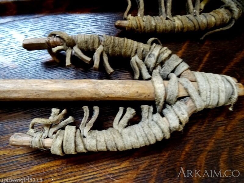 Три коротких копья, длинною около 1 м, которые бросались только с помощью копьеметалки. На конце древка специально вырезаны позы для неё. Форма наконечников очень самобытна. К сожалению назначение таких копий не понятно. Новая Гвинея (фото 4)