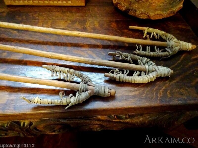 Три коротких копья, длинною около 1 м, которые бросались только с помощью копьеметалки. На конце древка специально вырезаны позы для неё. Форма наконечников очень самобытна. К сожалению назначение таких копий не понятно. Новая Гвинея (фото 5)