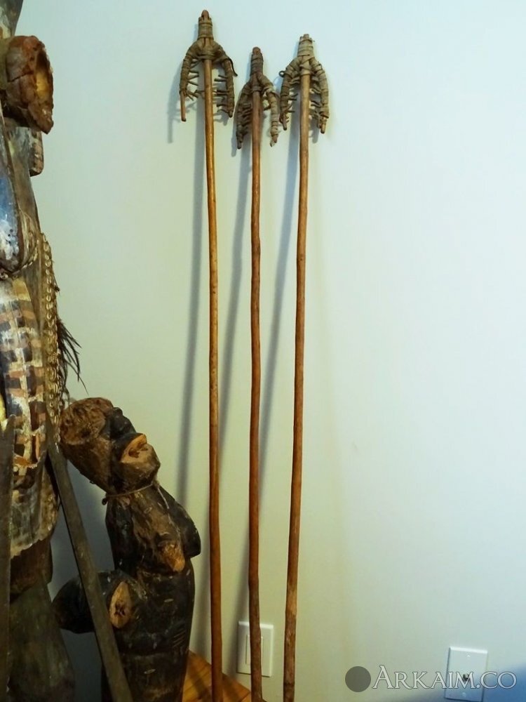 Три коротких копья, длинною около 1 м, которые бросались только с помощью копьеметалки. На конце древка специально вырезаны позы для неё. Форма наконечников очень самобытна. К сожалению назначение таких копий не понятно. Новая Гвинея (фото 6)
