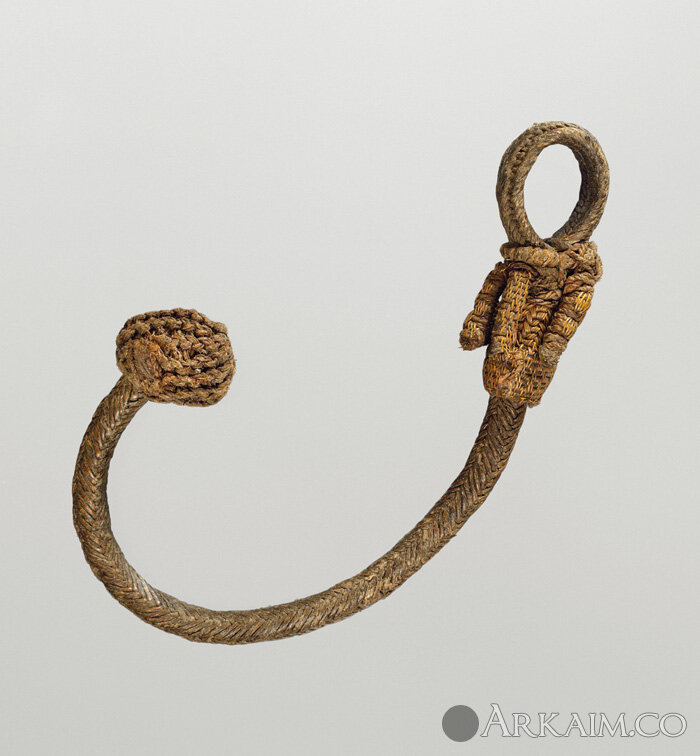 Приспособление для метания копья из Новой Каледонии. Основу крючка делали из ребра сельди. Кольцо для пальца делалось отдельно, потом всё соединяли шнуром из кокосового волокна. Получилась удобная и эффективная копьеметалка.