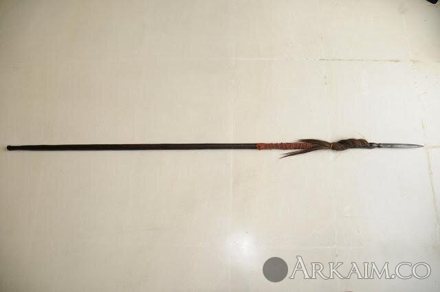 Интересный факт - наконечники у них были все черешковые. Копьё имело охотничьи и ритуальные функции, во время боя оно использовалось, если только было под рукой. Длина охотничьего копья было около 1,5 м. Копья с длинными наконечниками называются медвежьими и использовались для охоты на медведей.