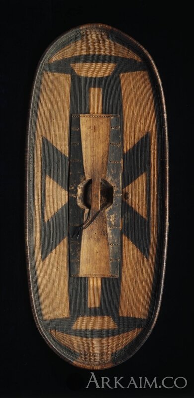 Заирские щиты занде (иногда можно встретить азанде). В длину они были 1,1-1,3 м. Эти щиты плетённые, ручка делалась из дерева и лианы. Всегда украшены орнаментом, который символизировал цвет земли. По внешнему виду у некоторых народностей реки Конго щиты похожи и на первый взгляд не отличаются. Но у каждой народности был свой орнамент и они отличали своих от чужих легко