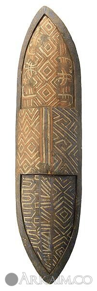 Щит народности монго, Конго. Щиты делали плетённые и деревянные. Плетённые щиты часто очень похожи на щиты другой заирской группы нганди.