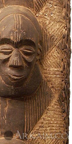 Щит племени южных чокве. Чокве проживают на территории от Конго до Анголы. Делятся они на северных чокве и южных. Северные чокве это охотники, южные земледельцы и скотоводы. У южных чокве щит длиннее и уже, у северных он короче и имеет округлую форму, различия связанны с условиями проживания. В джунглях длинный щит не удобен для движения и охоты. В условиях саванны наоборот. Щит полностью вырезается из дерева.