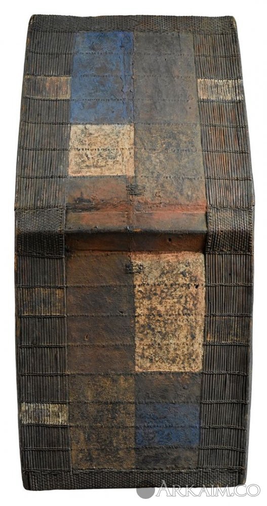Щит народности топоке. Бассейн реки Конго. Заир. Щит сделан из дерева или плетённый, иногда обклеивался кожей. Длина 1-1,2 м. V-образная форма с небольшим изгибом