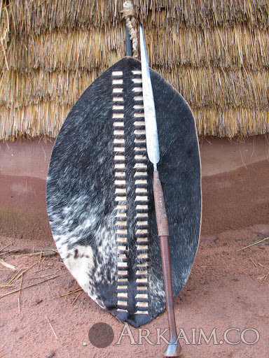 Щиты зулусов и родственных им народов (свази) отличаются по размерам и немного по форме. Одни больше похожи на овал, другие на круг. Но у них всех одна конструкция и принцип изготовления. Зулусы делали свой щит таким образом, что бы у них была возможность вставлять дубинку, копьё и дротик пропуская их через специальные петли, и нести щит на плече или за длинную рукоять, которая шла вдоль всего щита и выходила за его периметр.