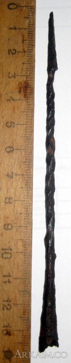 Втульчатый одношипный наконечник с витой шейкой, вариант типа 1 по Медведеву, 10-13 вв.