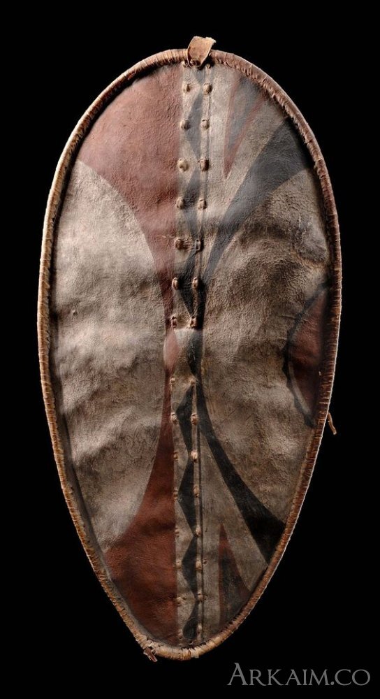 Щиты масаев. По тому в какие цвета раскрашен щит масая можно было понять его место в иерархии. Молодые воины имели право пользоваться только белым, чёрным и серым цветами.