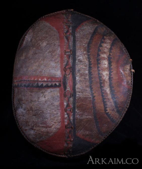 Щиты масаев. По тому в какие цвета раскрашен щит масая можно было понять его место в иерархии. Молодые воины имели право пользоваться только белым, чёрным и серым цветами.