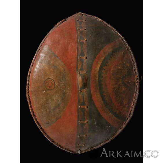 Щиты масаев. По тому в какие цвета раскрашен щит масая можно было понять его место в иерархии. Молодые воины имели право пользоваться только белым, чёрным и серым цветами.