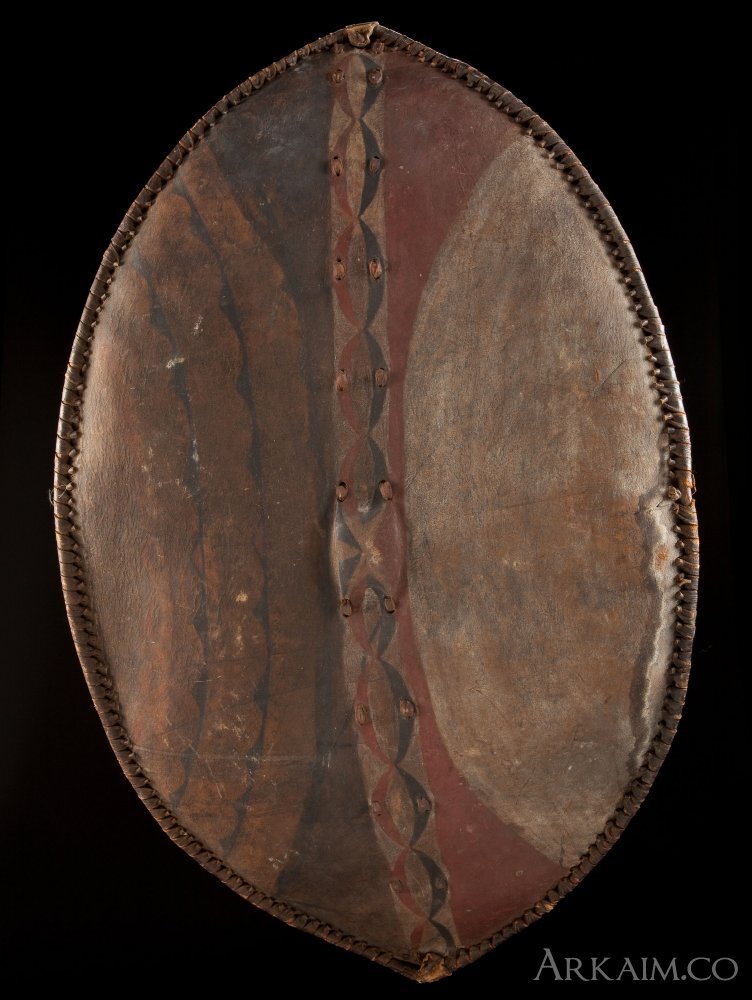 Щиты масаев. По тому в какие цвета раскрашен щит масая можно было понять его место в иерархии. Молодые воины имели право пользоваться только белым, чёрным и серым цветами.