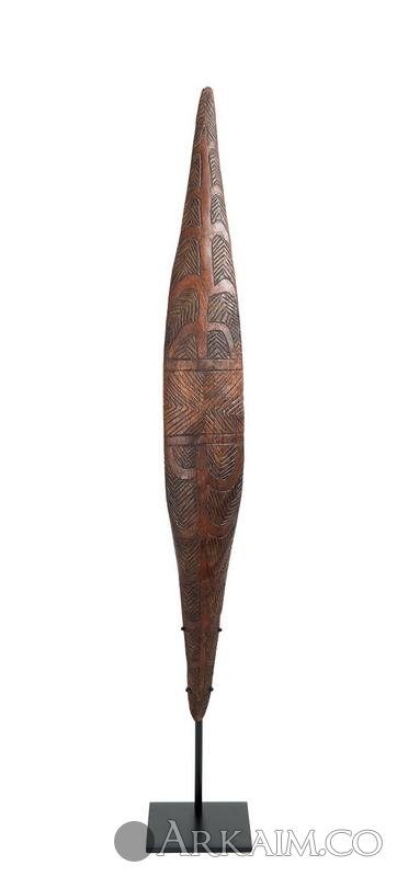 Подобные щиты служили для парирования копий, которые бросались несколькими людьми в обидчика во время исполнения мести. Человек, который заслужил месть становился лицом к солнцу и парировал брошенные в него копья.