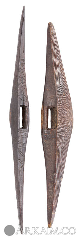 Подобные щиты служили для парирования копий, которые бросались несколькими людьми в обидчика во время исполнения мести. Человек, который заслужил месть становился лицом к солнцу и парировал брошенные в него копья.