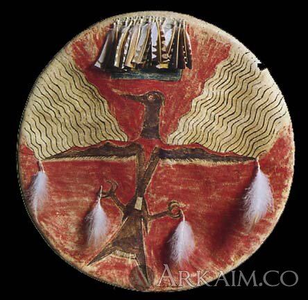 Щит северо-американских индейцев. Боевые щиты были большего размера, в диаметре 55-65 см. Танцевальные около 40 см. На щитах были нарисованы символы, которые касались не только племени, но и самого владельца.