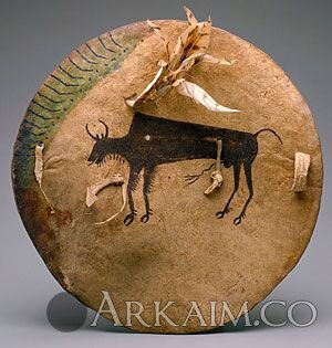 Щит северо-американских индейцев. Боевые щиты были большего размера, в диаметре 55-65 см. Танцевальные около 40 см. На щитах были нарисованы символы, которые касались не только племени, но и самого владельца.