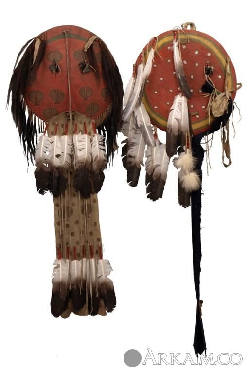 Щит северо-американских индейцев. Боевые щиты были большего размера, в диаметре 55-65 см. Танцевальные около 40 см. На щитах были нарисованы символы, которые касались не только племени, но и самого владельца.