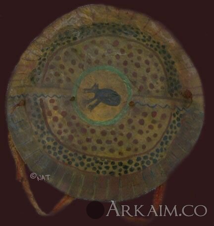 Щит северо-американских индейцев. Боевые щиты были большего размера, в диаметре 55-65 см. Танцевальные около 40 см. На щитах были нарисованы символы, которые касались не только племени, но и самого владельца.