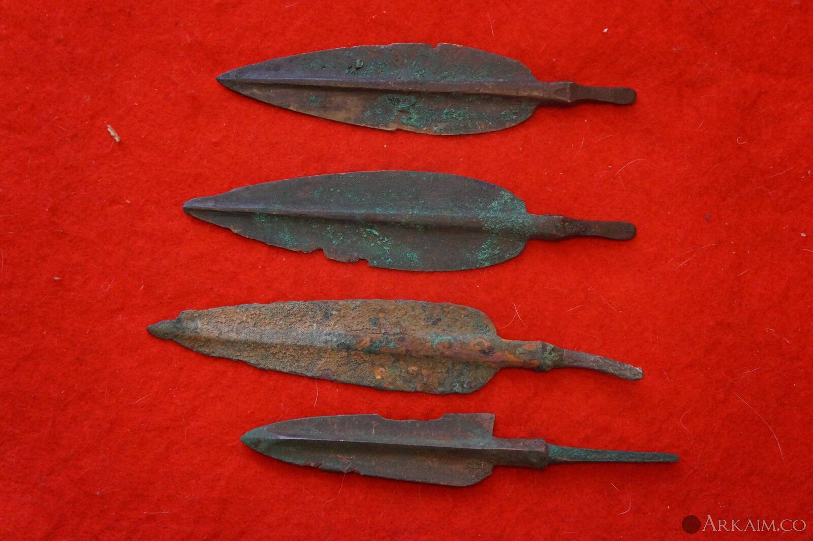 Наконечники дротиков. Три верхниx - листовидная классика с коротким черенком-ложкой - Малая Азия, четвертый - Луристан. Бывшая коллекция Йоxана Доxенфельта