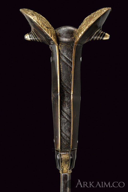Ушастый кинжал (левантийская дага, бургундский кинжал) - европейский кинжал, с прямым обоюдоострым клинком, линзовидного или ромбовидного сечения. Рукоять с утолщением посередине, без гарды, она просто немного утолщалась у основания клинка. Навершие в виде двух дисков, расходящихся под углом друг к другу, иногда, в 180 градусов. В желоб между дисками клали большой палец руки при обратном хвате, что усиливали укол кинжалом. Ушастые кинжалы часто богато декорировались.