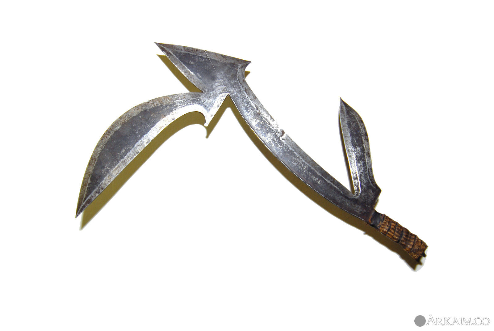 Использовался воинами народа занде, населявшего территорию Судана и Заира по обоим берегам реки Уэлс. Клинок стальной, изогнутый, сложной формы, с двумя заостренными отростками, без лезвий. Один конец клинка представляет собой хвостовик, обмотанный узким ремешком из растительных волокон, который служит рукоятью.