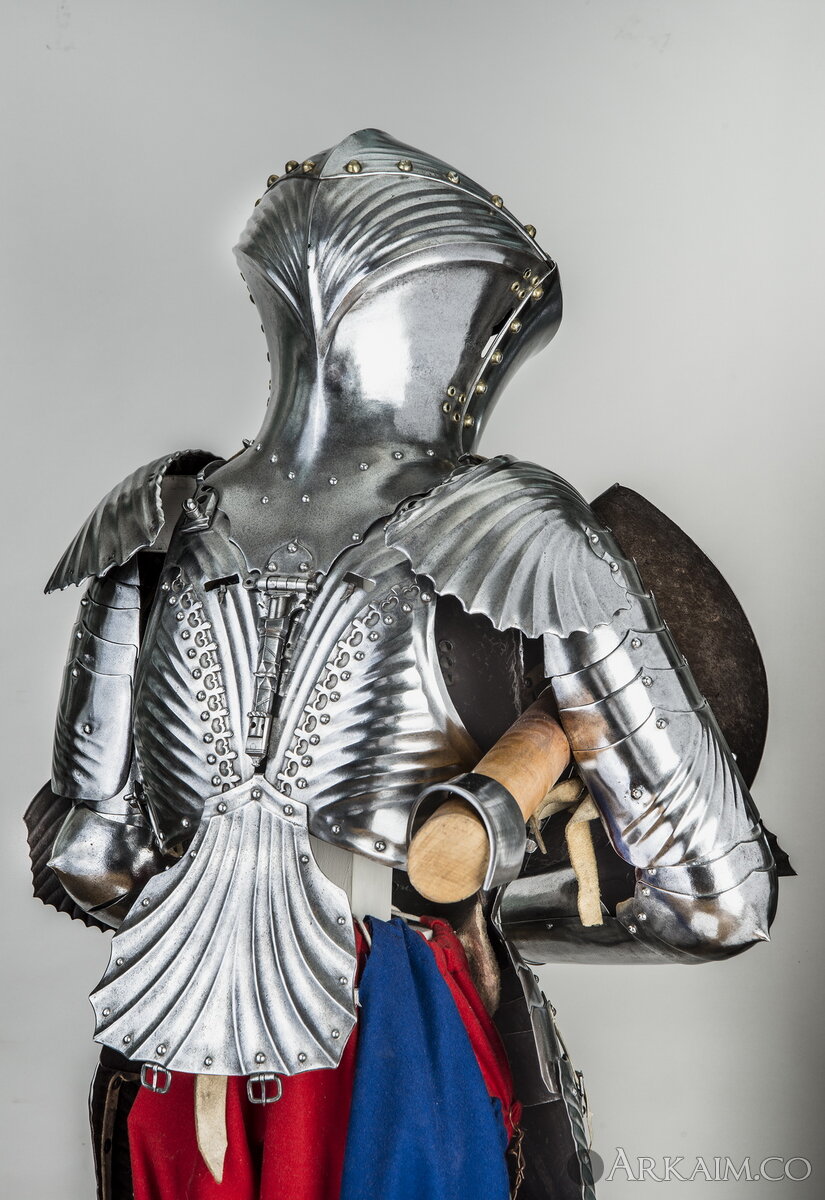 Турнирные доспехи этого типа, известные под названием «штехцойг» («Stechzeug»), использовали во время специального турнира (Gestech) на копьях, особенно популярного в Германии в XV-XVI вв. Представленный на выставке доспех был подарен в 1842 году императору Николаю I его матерью императрицей Марией Федоровной. До этого доспех хранился в Люнебурге.