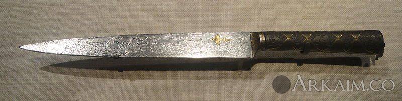 Нож – на вид очень простой, на самом деле ценен, прежде всего, не отделкой, а своим материалом – он изготовлен из метеоритного железа! Принадлежал шаху Джахангиру, династии Виликих Моголов, 1621 г. Экспонат Галереи искусств Смитсониевского национального музея Азиатского искусства в Вашингтоне